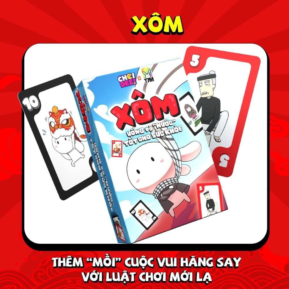 Xôm không chỉ là một trò chơi, mà còn là bộ bài tuyệt vời để khuấy động không khí, mang đến tiếng cười sảng khoái trong những buổi tụ họp cùng bạn bè. Đặc biệt, rất hiệu quả cho việc thúc đẩy mọi người uống đủ nước một cách vui vẻ. Tất cả những ai lười uống nước sẽ phải trải qua 3 vòng thử thách đầy kịch tính. Bạn phải vận dụng hết sự may mắn của mình và có 1 chiến lược đỉnh nóc kịch trần để trở thành người thoát khỏi cầu cá tra và giành chiến thắng.